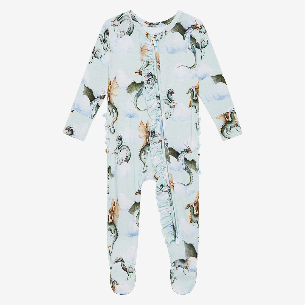 Posh Peanut Bamboo RUFFLED Zippered Footie - Percy Dragon