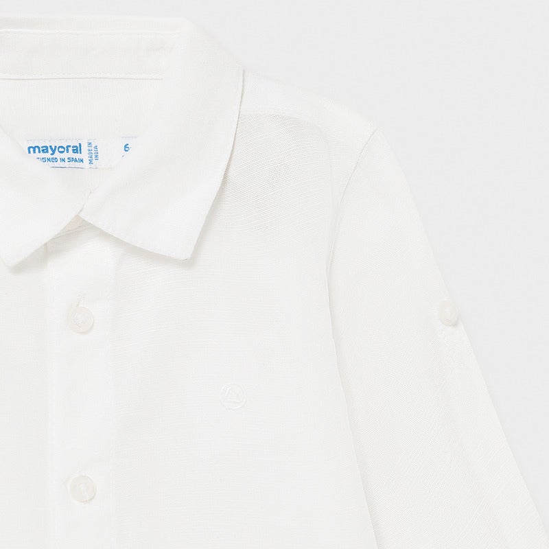 117 Mayoral Boys Long Sleeve Linen Dress Shirt, White