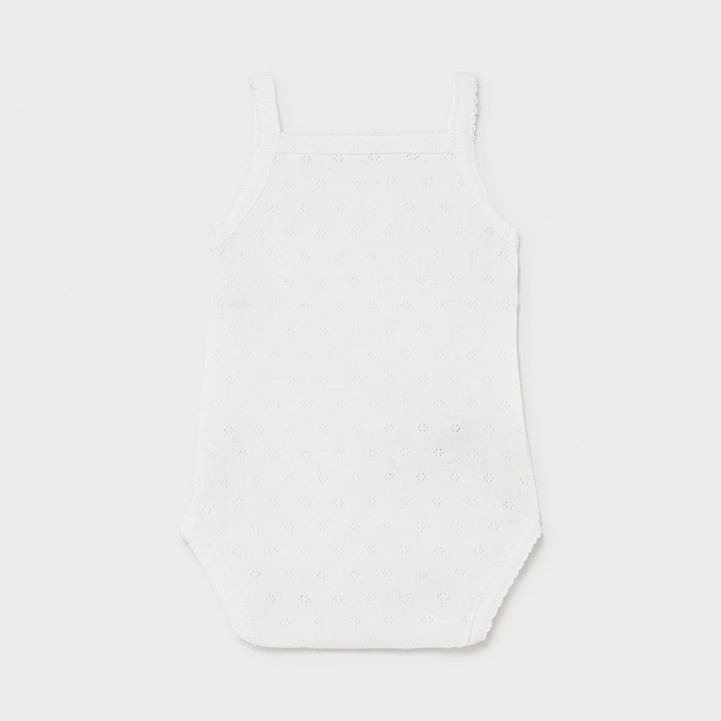 Casually stylish and fun in this white bodysuit. Tank top basic bodysuit with straps for your little girl, she will love to stay in and play in all day everyday during the warm weather months.