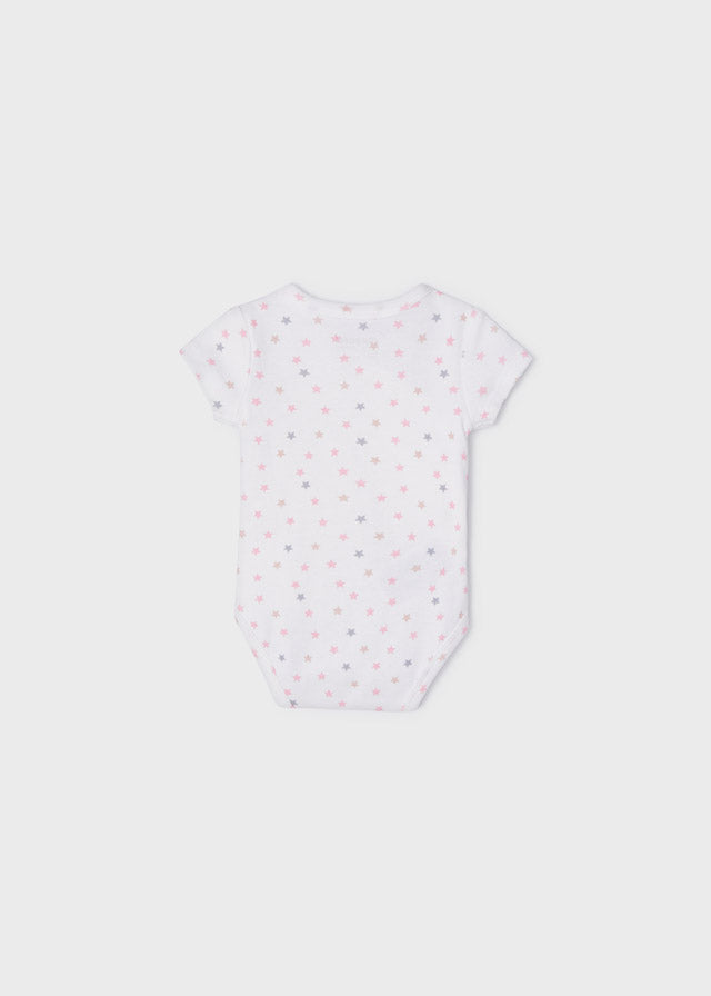 1707 Mayoral Girls Onepiece snap Bodysuit, Eco-Friendly, Pink/Grey Stars