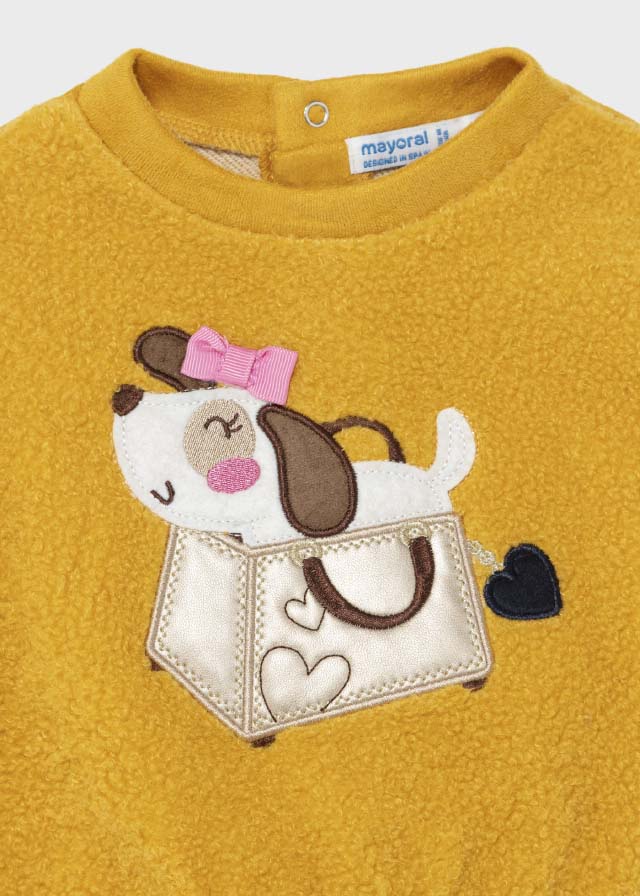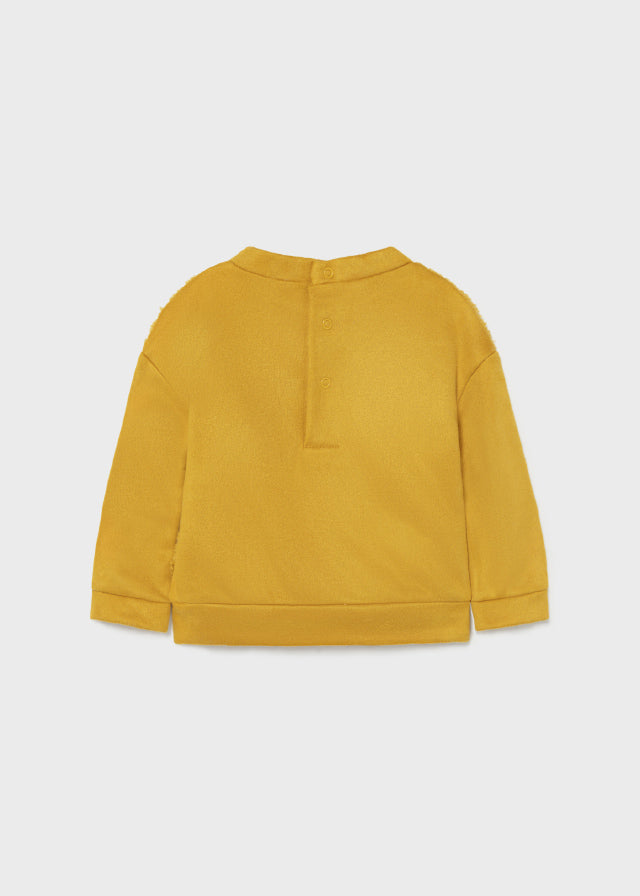 2428 Mayoral Girls Shearling Pullover Sweater, Applique, Mustard