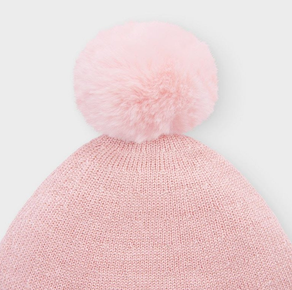 9312 Mayoral Lurex Puff Scarf, Beanie, & Mitten Set, Blush Pink