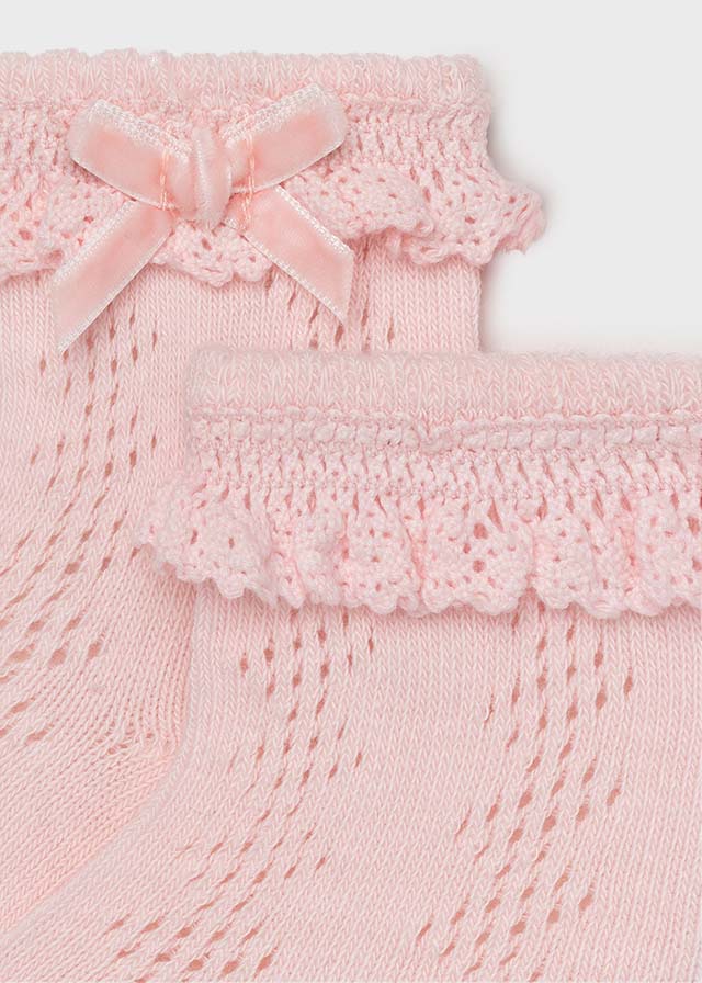 9427 Mayoral Girls Openwork Knit Lace Ruffled Ankle Socks, Baby Pink