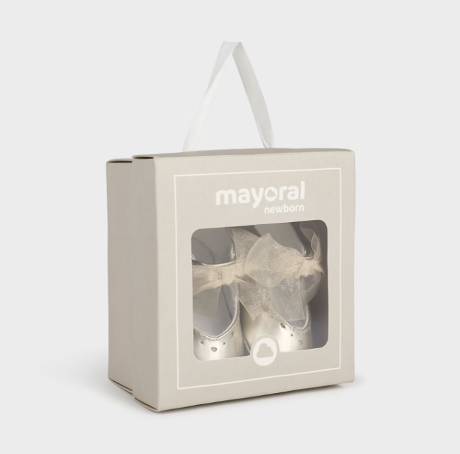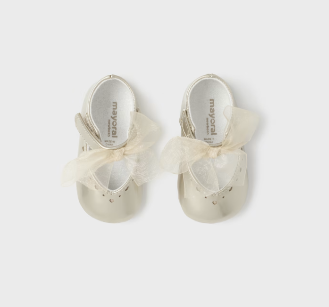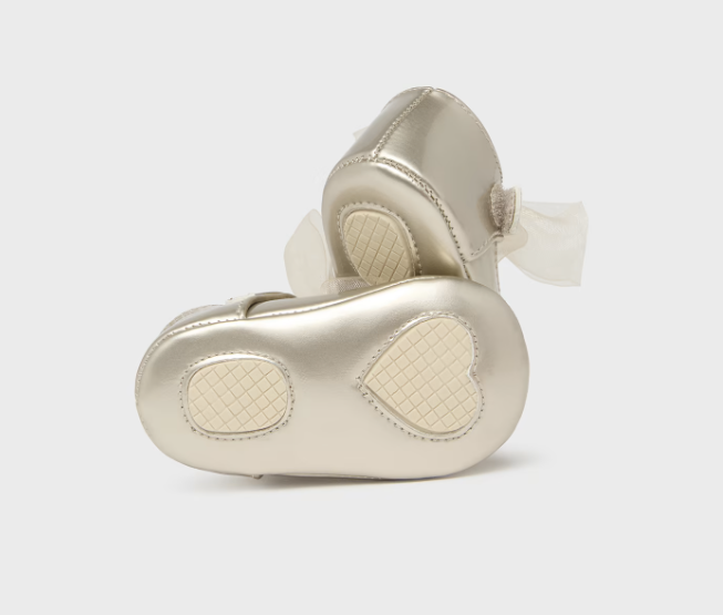 9687 Mayoral Baby Girls Leatherette Bow Mary Jane Non-Skid Heart Bottom - Light Gold