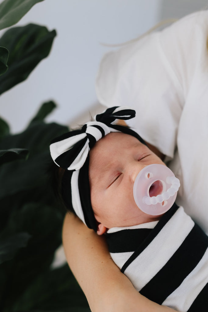 Copper Pearl Bow Headband Headwrap, Black and White Striped Classic