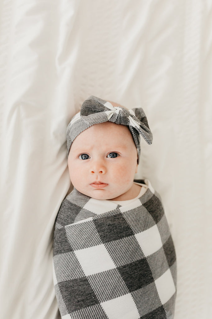Copper Pearl Lux Stretchy Swaddle Blanket Single, Black and White Scotland