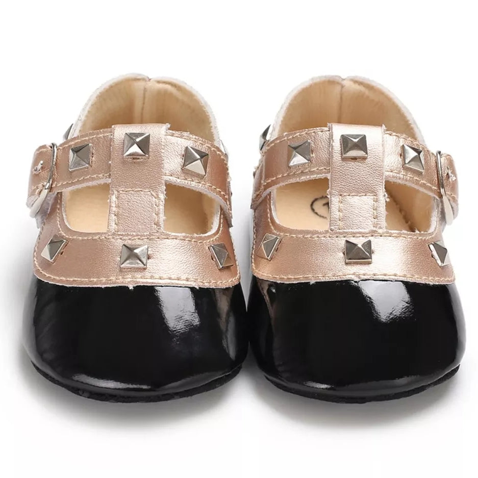 Girls Dress Shoes, Patent Leatherette Mini Valentina Studded Classics, Candy Apple Red (also available in Black)