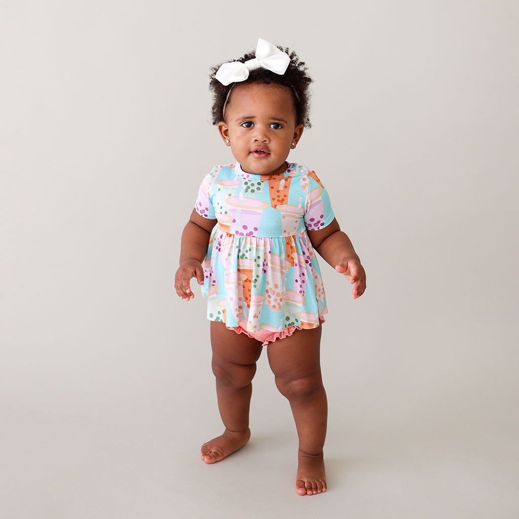 Posh Peanut Bamboo Basic S/S Peplum Top & Bloomer/Bummie Set- Boba Time