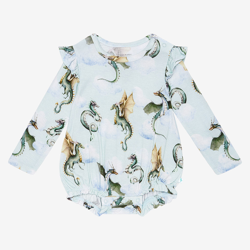 Posh Peanut Bamboo L/S Ruffled Bubble Romper - Percy Dragon