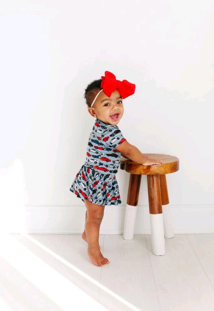 Posh Peanut Lux Twirl Skirted Bodysuit- Miles Racecars