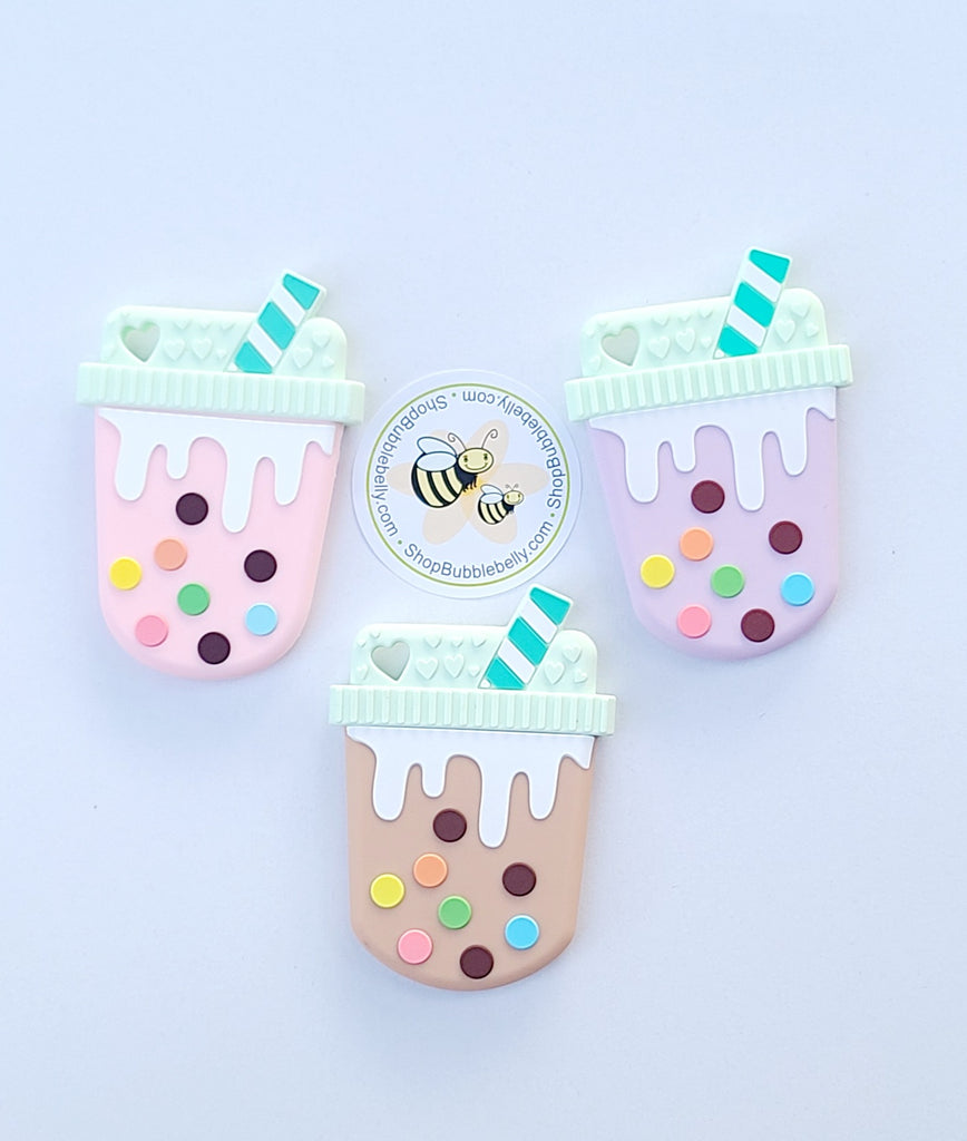 Silicone Teething & Chew Toy, Classic Milk Tea Rainbow Boba