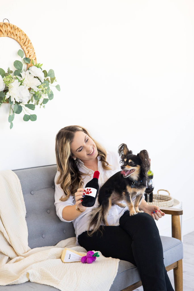 Dog Chew Toy Pawrcuterie Board 3PC Plush and Squeaker Toys Set, Wine, Grapes, and Cheese
