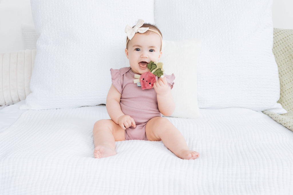 Baby and Toddler Teething Toy, Crinkle and Silicone Ring Radish