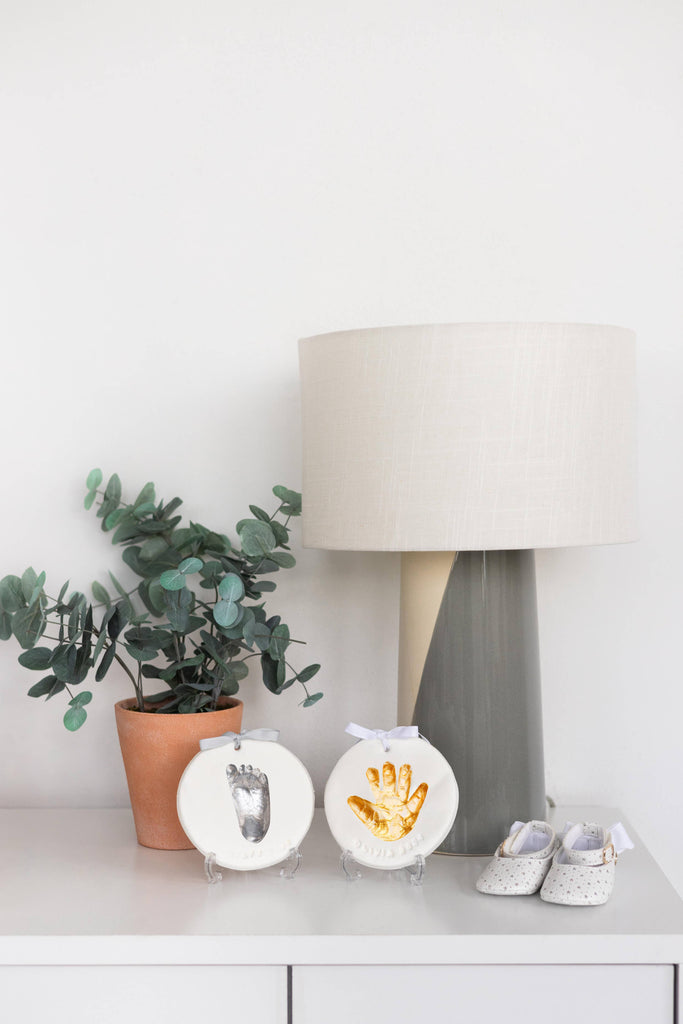 • Baby Handprint Kit: Preserve your baby’s prints forever and celebrate milestones with Pearhead’s 2-Pack Deluxe Baby Clay Handprint and Footprint Keepsake Kit.