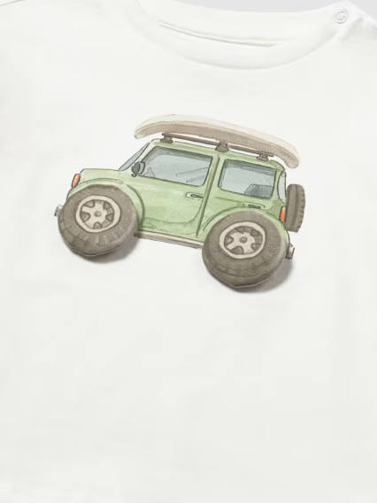 1011 Toddler Boy Eco-Sustainable Cotton S/S Printed T-Shirt - Cream Car