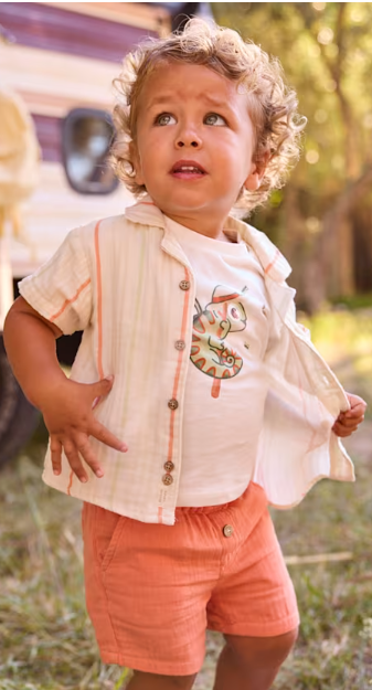 1216 Toddler Boy Eco-Cotton Muslin Wide Leg Shorts - Clay