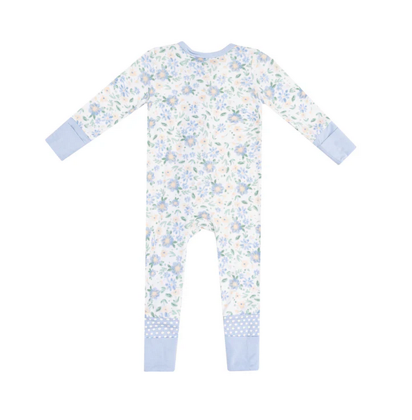 Angel Dear Bamboo L/S 2 Way Zipper Convertible Romper - Baby Veronica Blue Floral