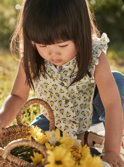 1105 Baby & Toddler Ruffled Sleeveless Button Front Shirt - Pistachio Flower