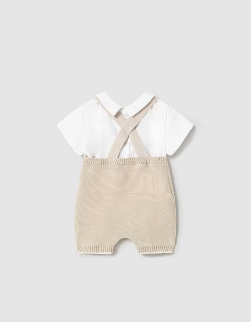 1607 Infant Classic Knit Overall Romper & Shirt Set - UNISEX Neutral Stone Teddy Bear
