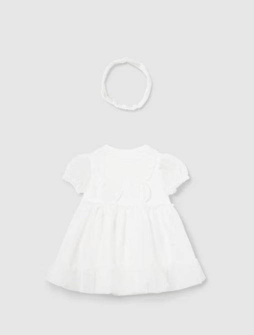 1629 Baby Girl Tulle Bodysuit Dress w/Butterfly Wings & Headband Crown, White
