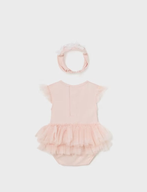 1702 Baby Girl Sustainable Cotton Tulle Tutu 3D Butterfly Bodysuit and Headband Set - Nude Pink