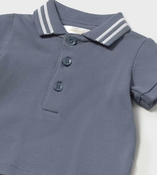 190 Mayoral Infant/Toddler Boy Eco-Cotton S/S Essential Polo Shirt - Star Chalky Blue