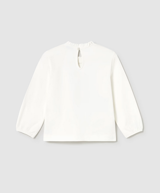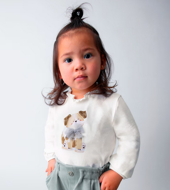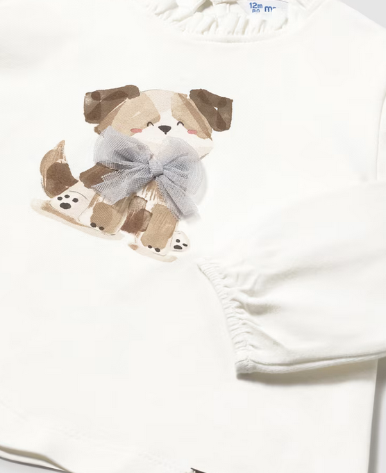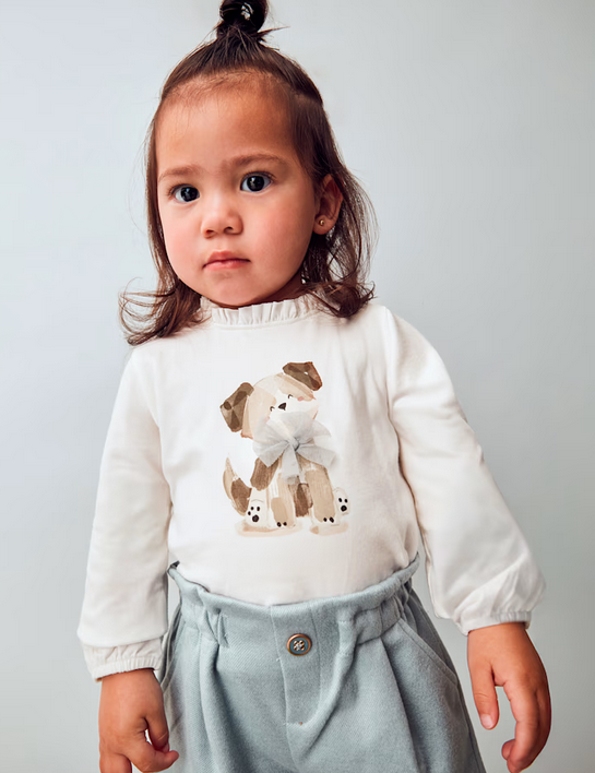 2075 Toddler Girls Eco-Sustainable Cotton L/S 3D Tulle Graphic T-Shirt - Puppy Bow, Cream