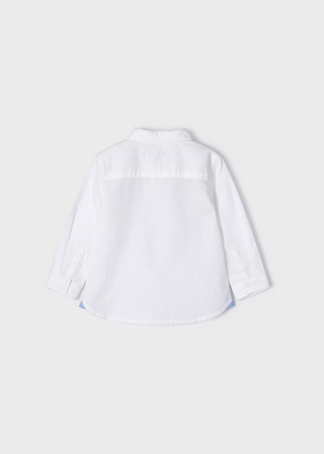 2159 Todder Boys L/S Eco-Sustainable Dress Shirt, Detachable Navy Bow Tie, White