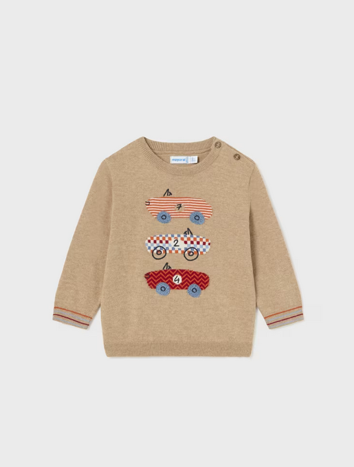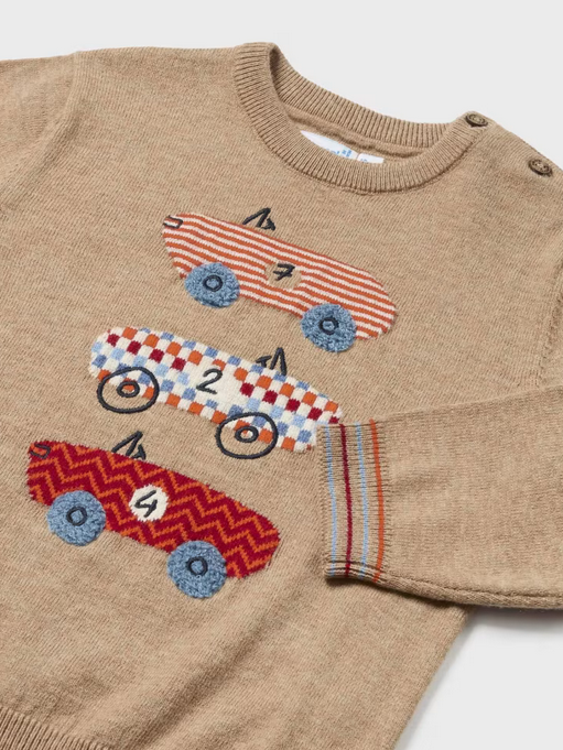 2313 Baby & Toddler Intarsia Embroidered Jersey - Vintage Race Cars Sand