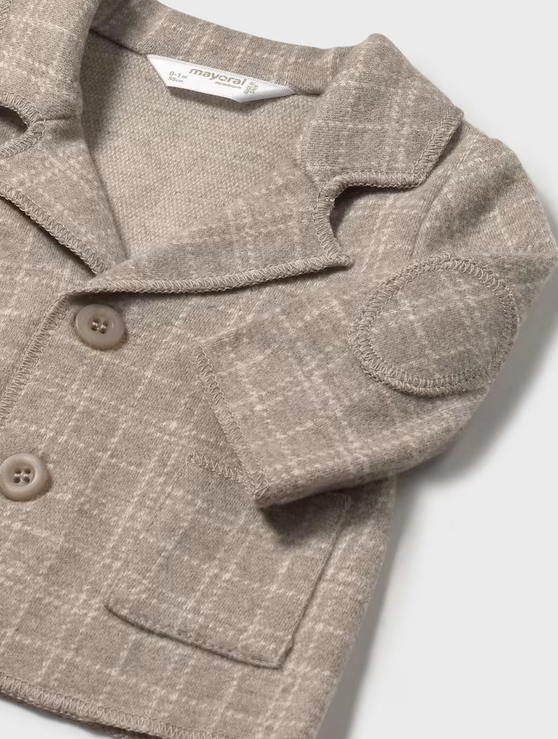 2407 Baby Boy Formal Check Blazer with Elbow Pads - Sesame Tan