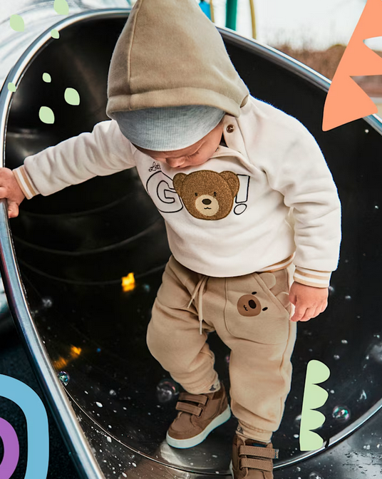 2504 Toddler Boy Soft Jogger Sweat Pants - Bear Pockets Latte