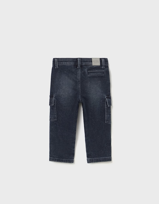 2505 Toddler Boy Soft Denim Cargo Pants - Dark Blue Black Wash