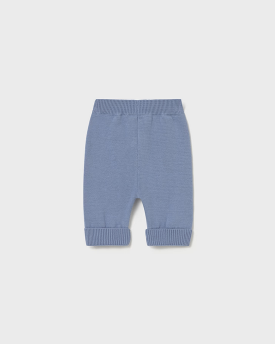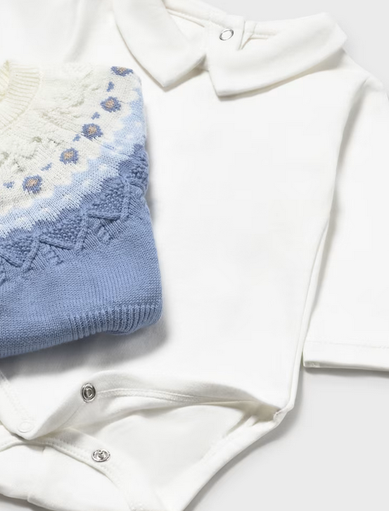 2570 Baby Boy Eco-Cotton Heirloom Knit Cardigan, Pants, Collared Bodysuit 3PC Set - Cloud Blue
