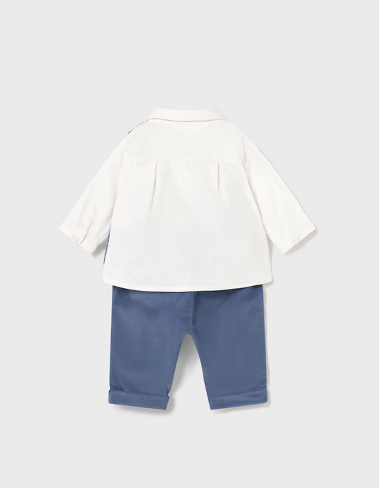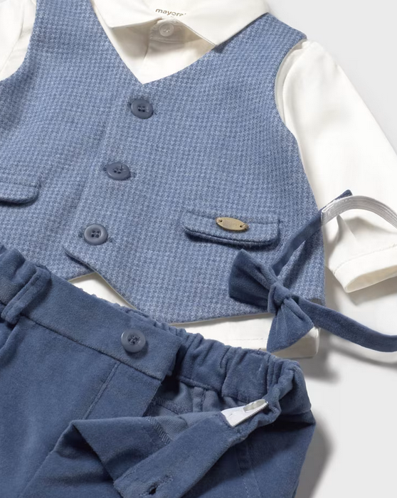 2581 Baby Boy Eco-Sustainable Cotton 3PC Formal Vest, Velvet Bow and Trouser Set - Artic Blue