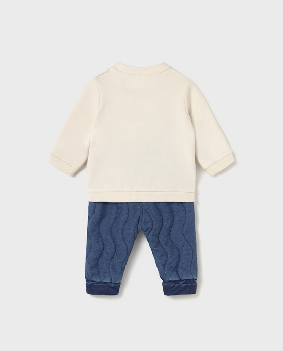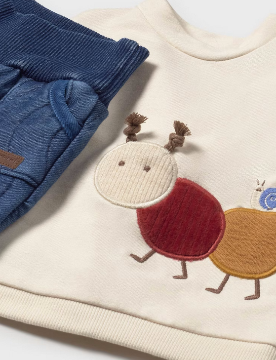 2584 Baby Boy 2PC Quilted Denim Joggers and 3D Applique Sweatshirt Set - Pottery Caterpillar