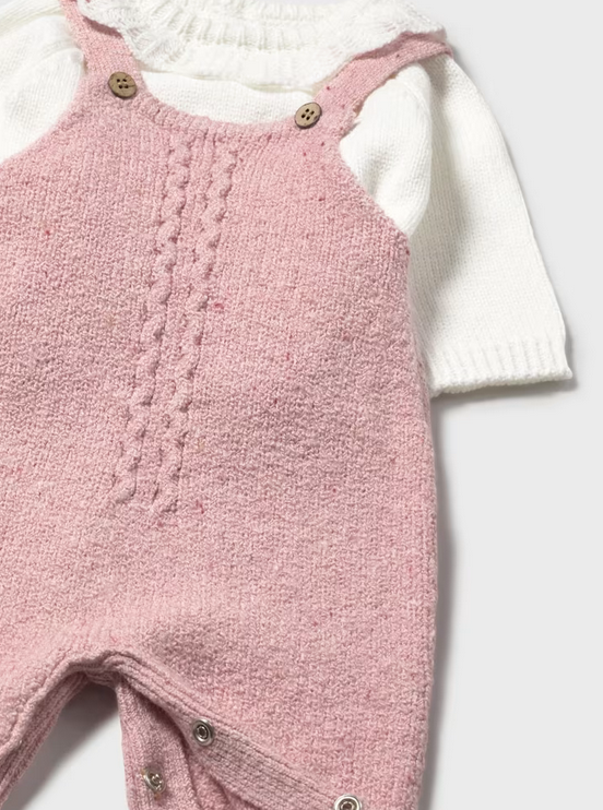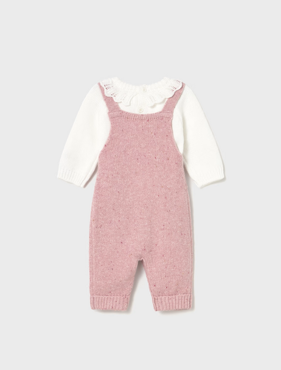 2605 Baby Heirloom Knit Overall Romper and Petal Collar Knit Sweater - Orchid Pink
