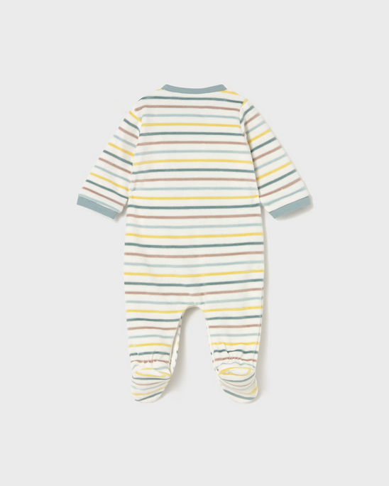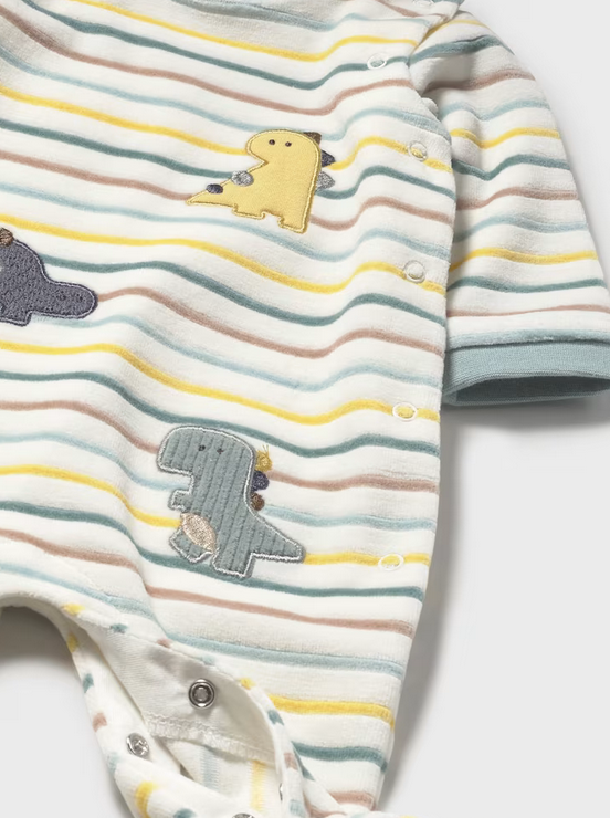 2718 Baby Boy Eco-Cotton L/S Velour Embroidered Kimono Snap Footie - Sage Dino Stripes