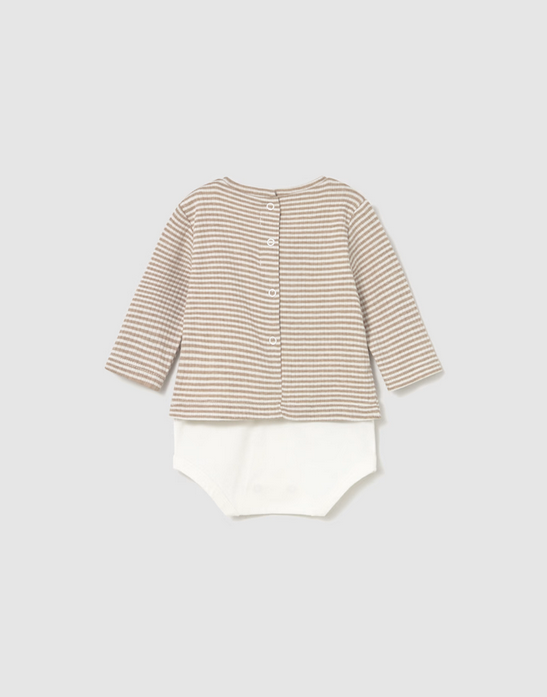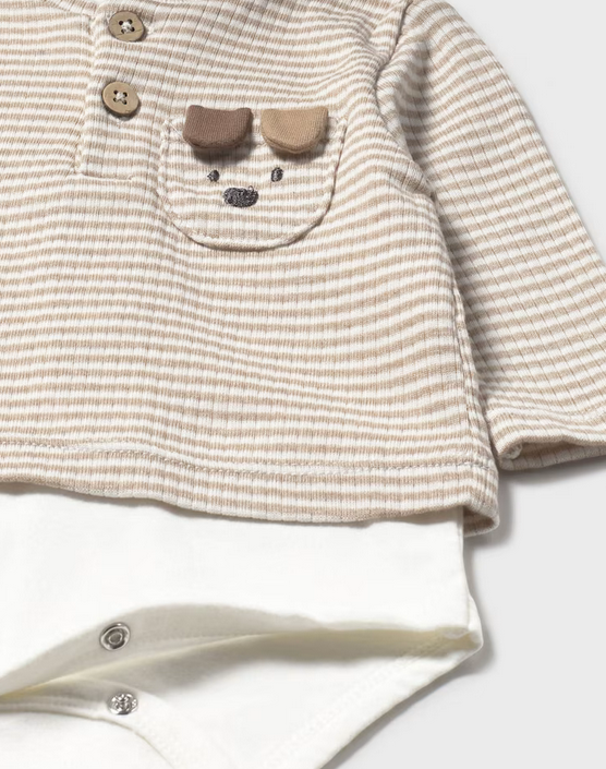 2728 Baby/Toddler Striped TShirt Bodysuit - 3D Puppy Pocket Brown Cookie