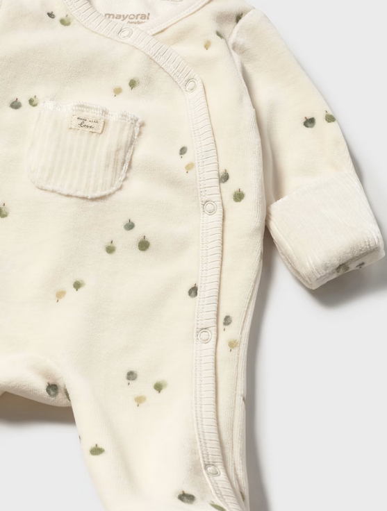 2729 Baby UNISEX Eco-Cotton Snap Trap Door Velour Footie UNISEX - Cream Sage