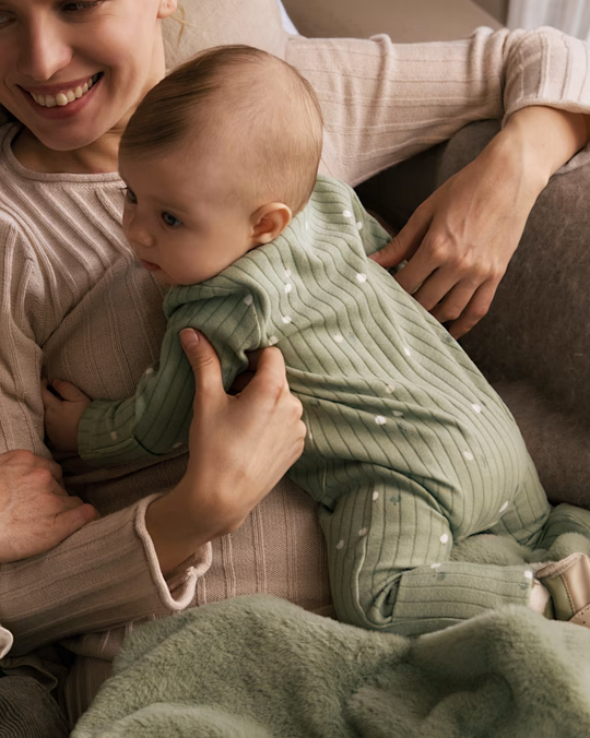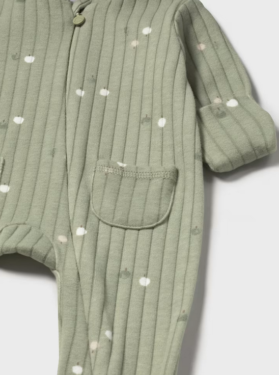 2730 Baby Eco-Cotton L/S Ribbed Long Romper UNISEX - Sage Green Apples