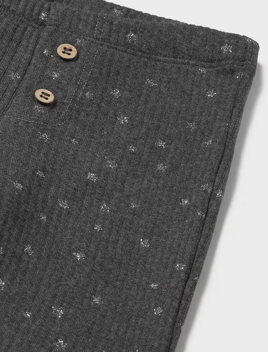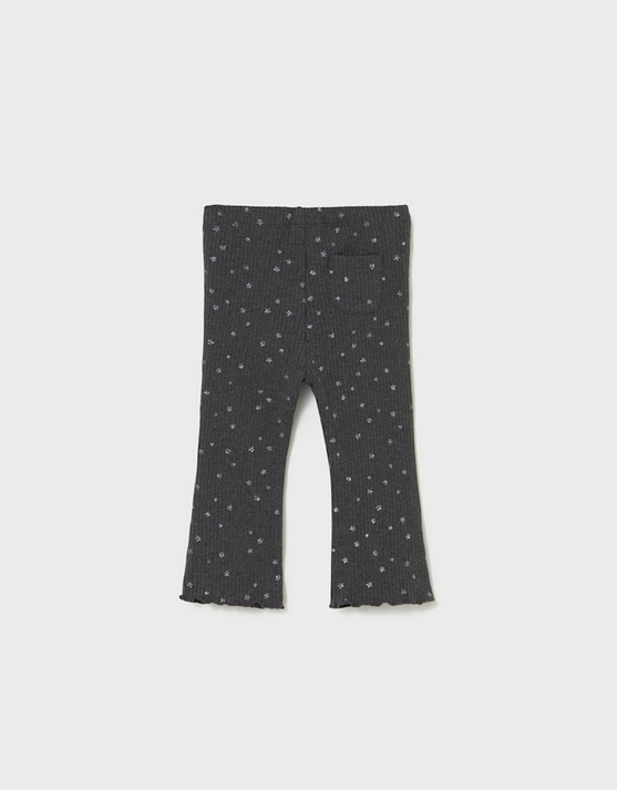 2735 Toddler Girls Eco-Sustainable Cotton Ribbed Flare Leggings - Lead Grey Sparkly Star