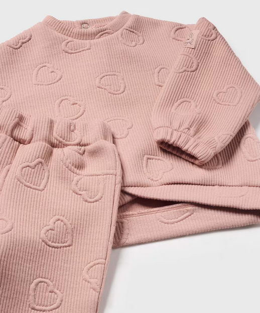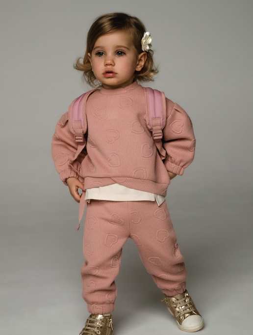 2827 Baby 2 Piece Heart Quilted Jogger Set - Blush