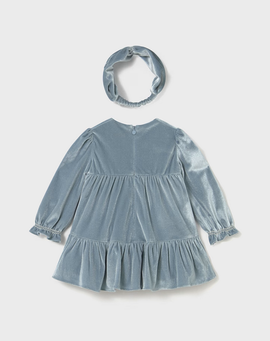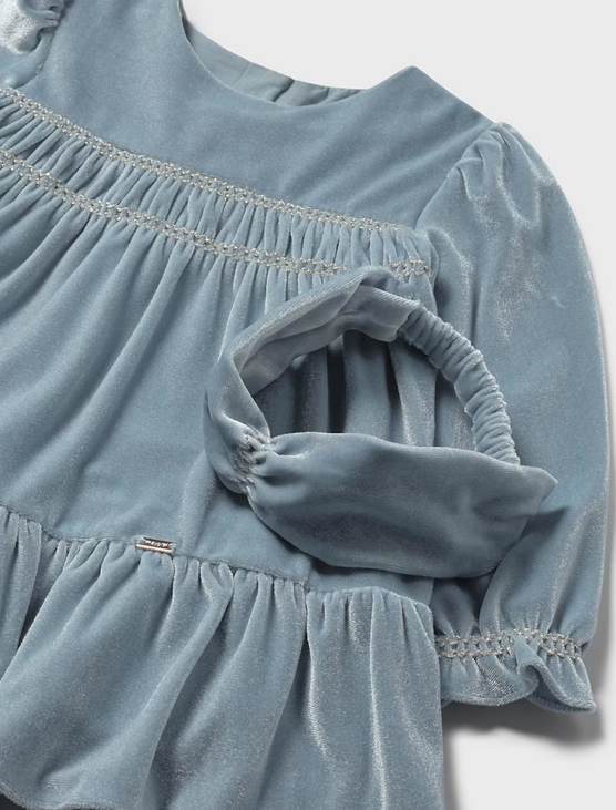 2904 Toddler Girls 2PC Smocked Velvet Dress and Headband Set - Blue Bell