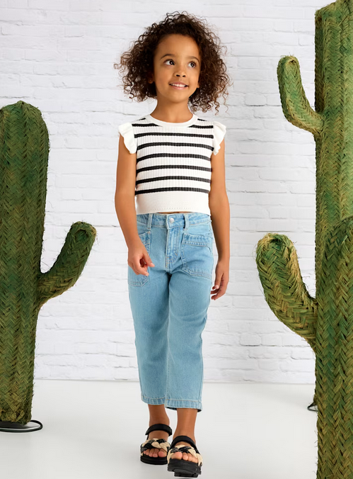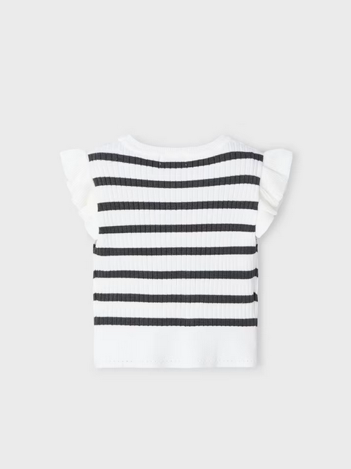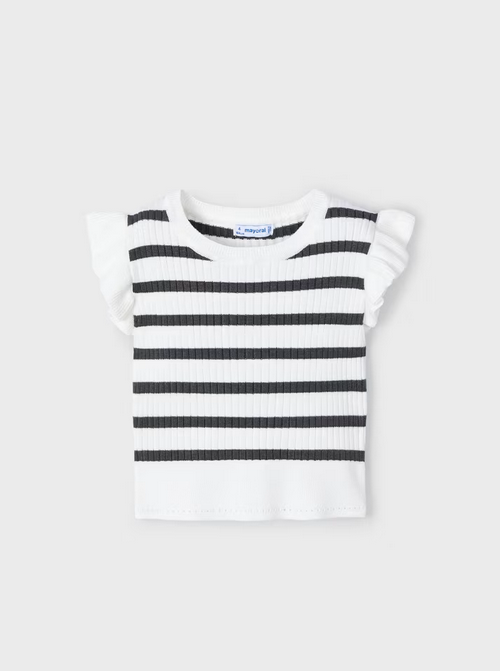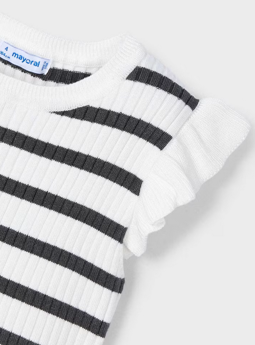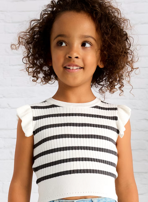 3024 Mini Girls Knit Flutter Sleeve Ribbed Top - White, Charcoal