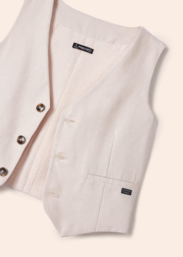 3349 Mayoral Mini Boys 3 Button Dress Vest, Tapioca Linen