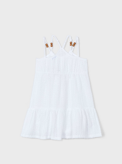 3936 Mini Girls Eco-Sustainable Open Knit Wood Bead Sundress/Swim Cover Up - White