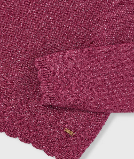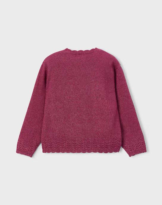 4302 Mini Girls Scalloped Trim Lurex Knit Smooth Sweater - Cherry