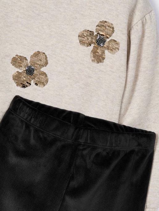 4706 Mini Girl Flower Puff Cuff Sweatsuit and Legging Set - Black