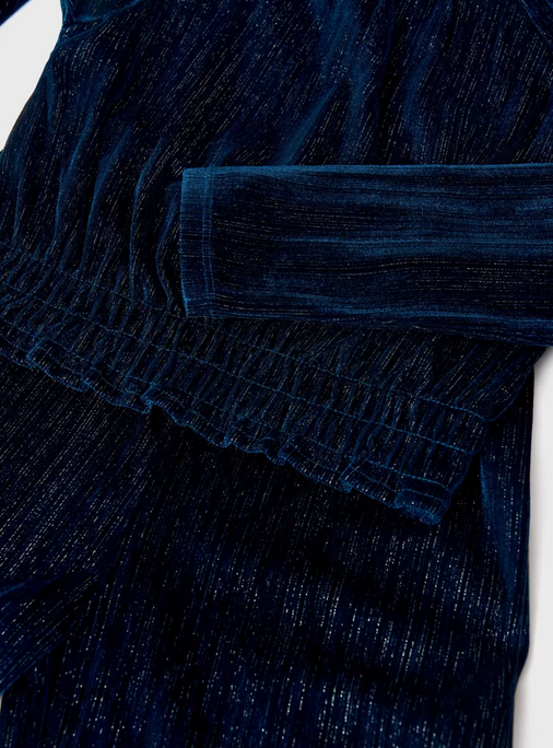 7553 Mayoral Tween/Teen Girls 2-Piece Cold Shoulder Lurex & Velvet Pant Set - Emerald Jewel Green