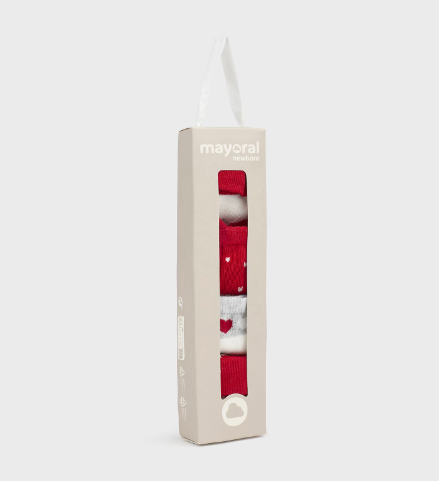 9658 Mayoral Baby Unisex 4PC Ankle Sock Set - Cherry Hearts